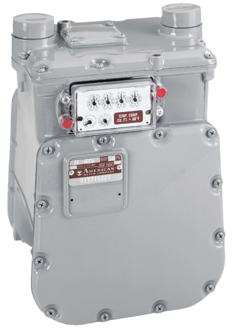AL-800 diaphragm gas meters with 20 PSIG (MAOP -Maximum Allowable Operating Pressure 20 Lbs/Sq-In) 1-1/4" diam NPT & 100PSIG (MAOP -Maximum Allowable Operating Pressure 100 Lbs/Sq-In) 1-1/2" Diam NPT